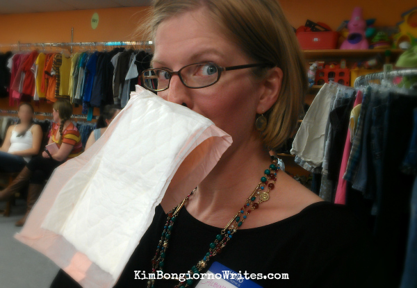 Postnatal pad as tissue by @TheKimBongiorno of @LetMeStart at #PeeAlone signing in VT